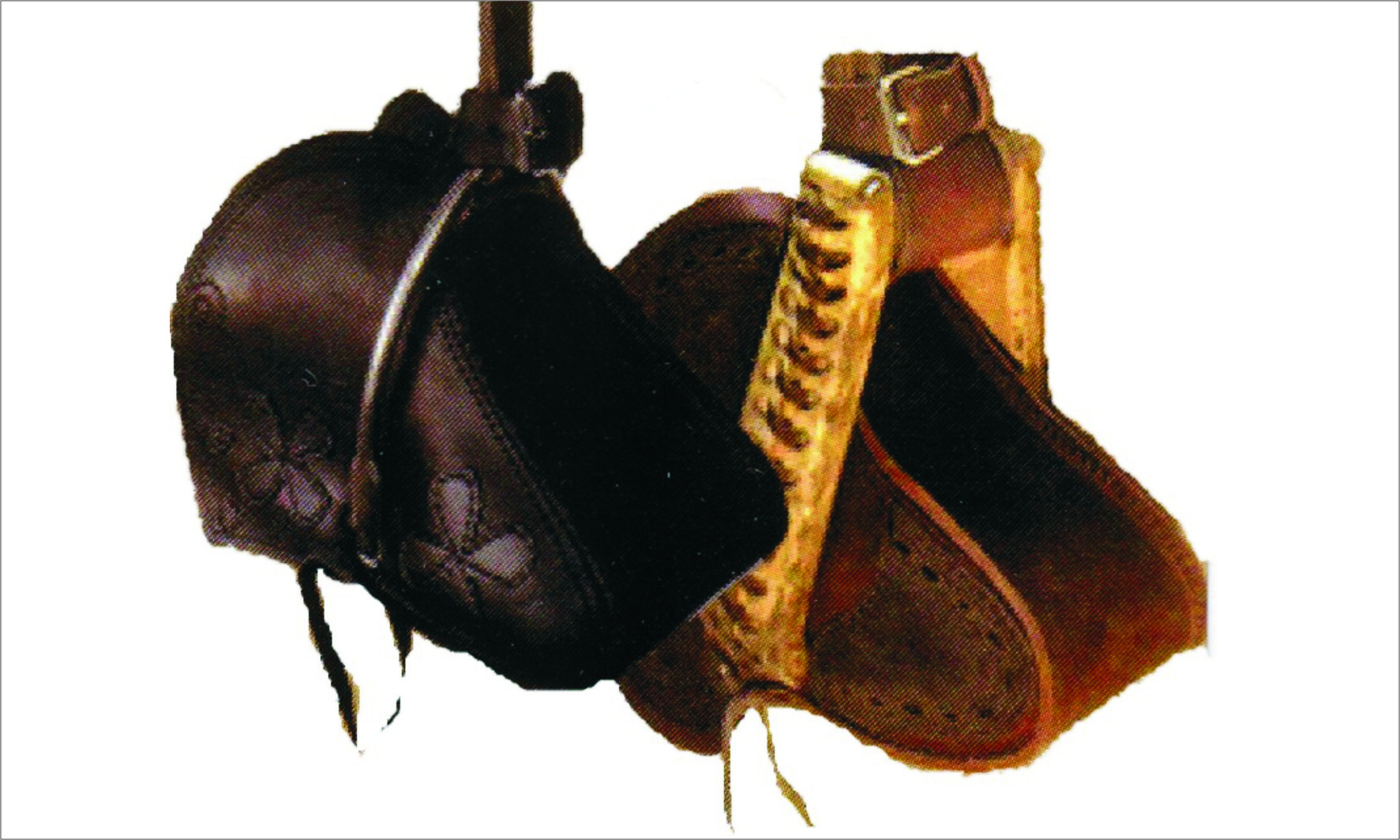 Kožený chránič nohy jezdce proti mrazu. Připevňuje se na třmen, má vyjímatelnou tepelnou vložku pro