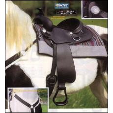 Kožené řemínky k sedlu. Ve střední části dva prořezy pro prostrčení a uvázaní ke kroužku, karabině n