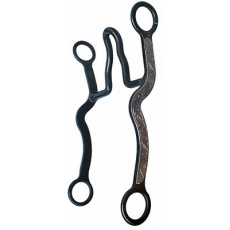Westernové "D" udidlo z černé oceli s mírně zakřiveným udítkem a vloženými měděnými proužky. Mat