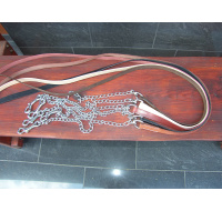 Kožené vodítko s řetízkem k halter ohlávkám. Materiál: kůže 3mm silná Šířka: 22mm Délka s řetí