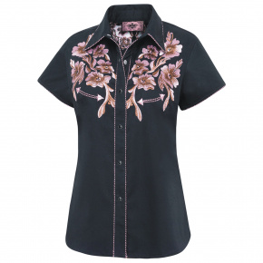 Krásná stylová dámská westernová košile s vyšívaným westernovým sedlem květinového vzoru. Košili zdo