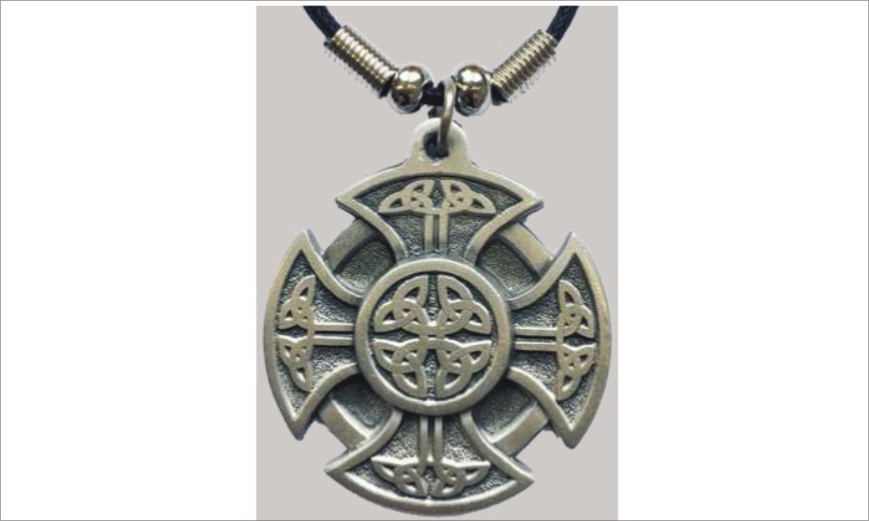 Kovový přívěsek na černé šňůrce imitující kůži. Zapínání karabinkou. Materiál: kov, textil Barv