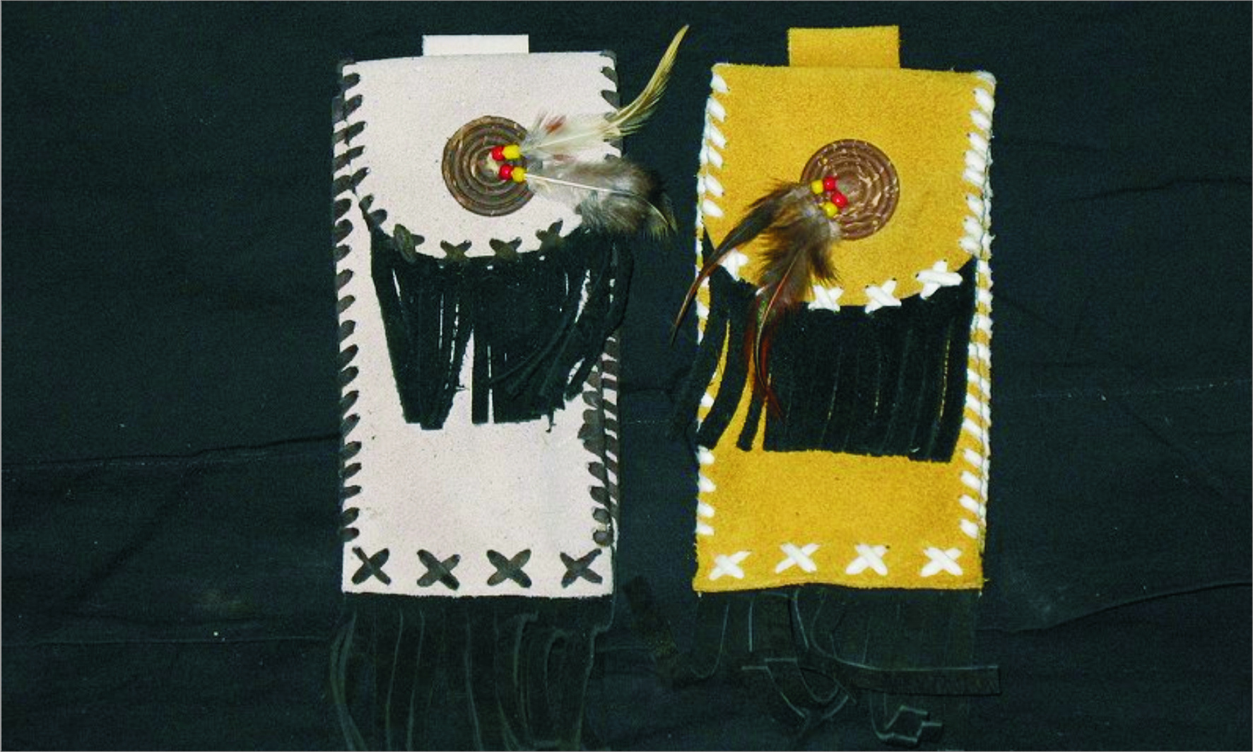 Okouzlující stylová kapsa na opasek zdobená indiánskými motivy, šněrováním a třásněmi. Zajímavý bare