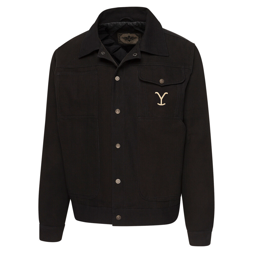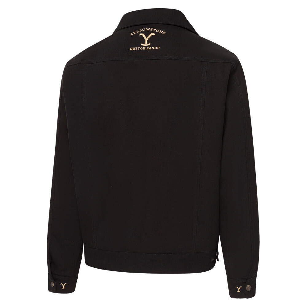 Odolná plátěná (canvas) bunda ve westernovém stylu, přesná replika bundy rančera Ripa Wheelera z kultovního seriálu Yellowstone. Odolný materiál a rovný střih dodávají bundě charakteristický rančovní vzhled. Praktické detaily, jako jsou našité klopy, boční kapsy a kovové druky, zajišťují vynikající funkčnost. Výrazná výšivka Yellowstone na hrudi, zádech a rukávu dotváří autentický vzhled.