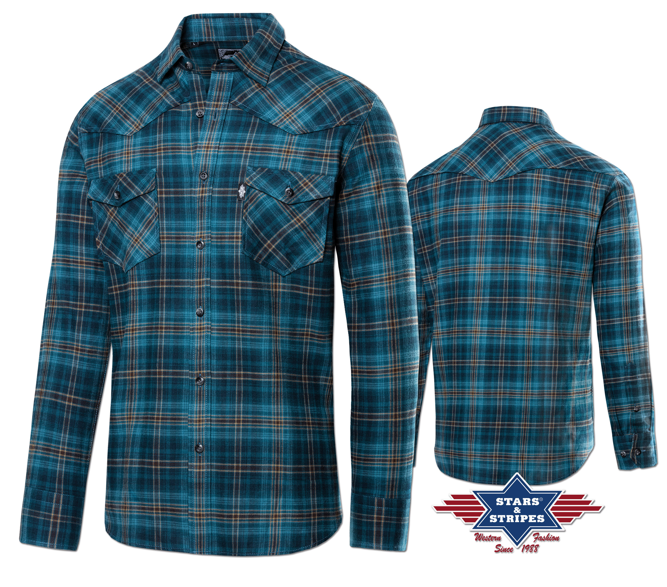 Stylová flanelová košile s westernovým sedlem a náprsními kapsami.