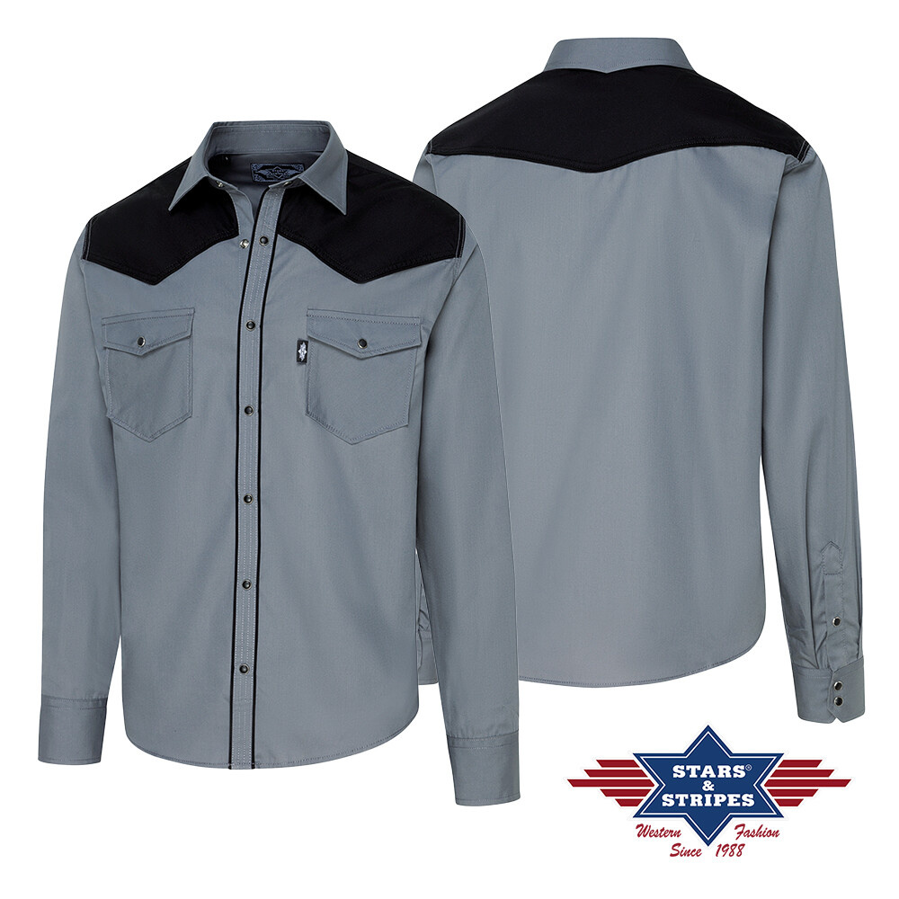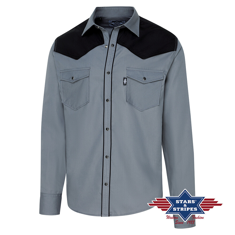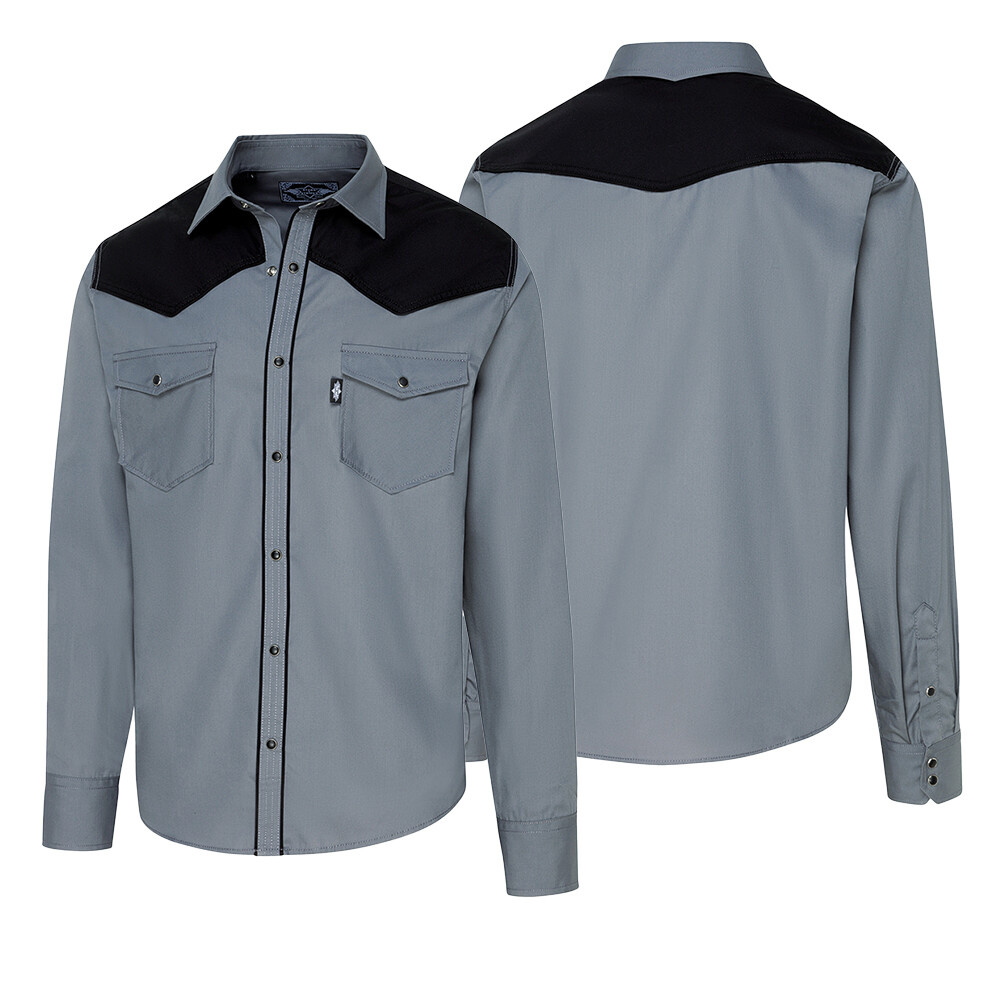 Stylová westernová košile zdobená kontrastním westernovým sedlem, stylovými knoflíčky a náprsními kapsami. Košile je příjemná na nošení a její linie zvýrazňují postavu. Do páru s dámskou košilí A-20.