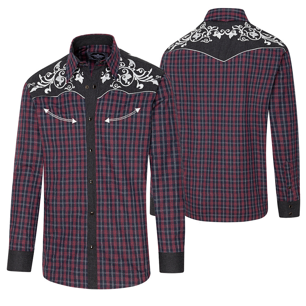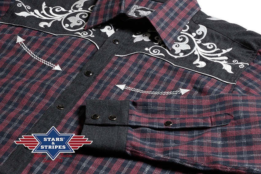 Stylová kostkovaná košile s vyšívaným westernovým sedlem květinového vzoru. Košili dotváří falešné náprsní kapsy, lem v límci a slušivé patentky. Do páru s dámskou halenkou Abby.