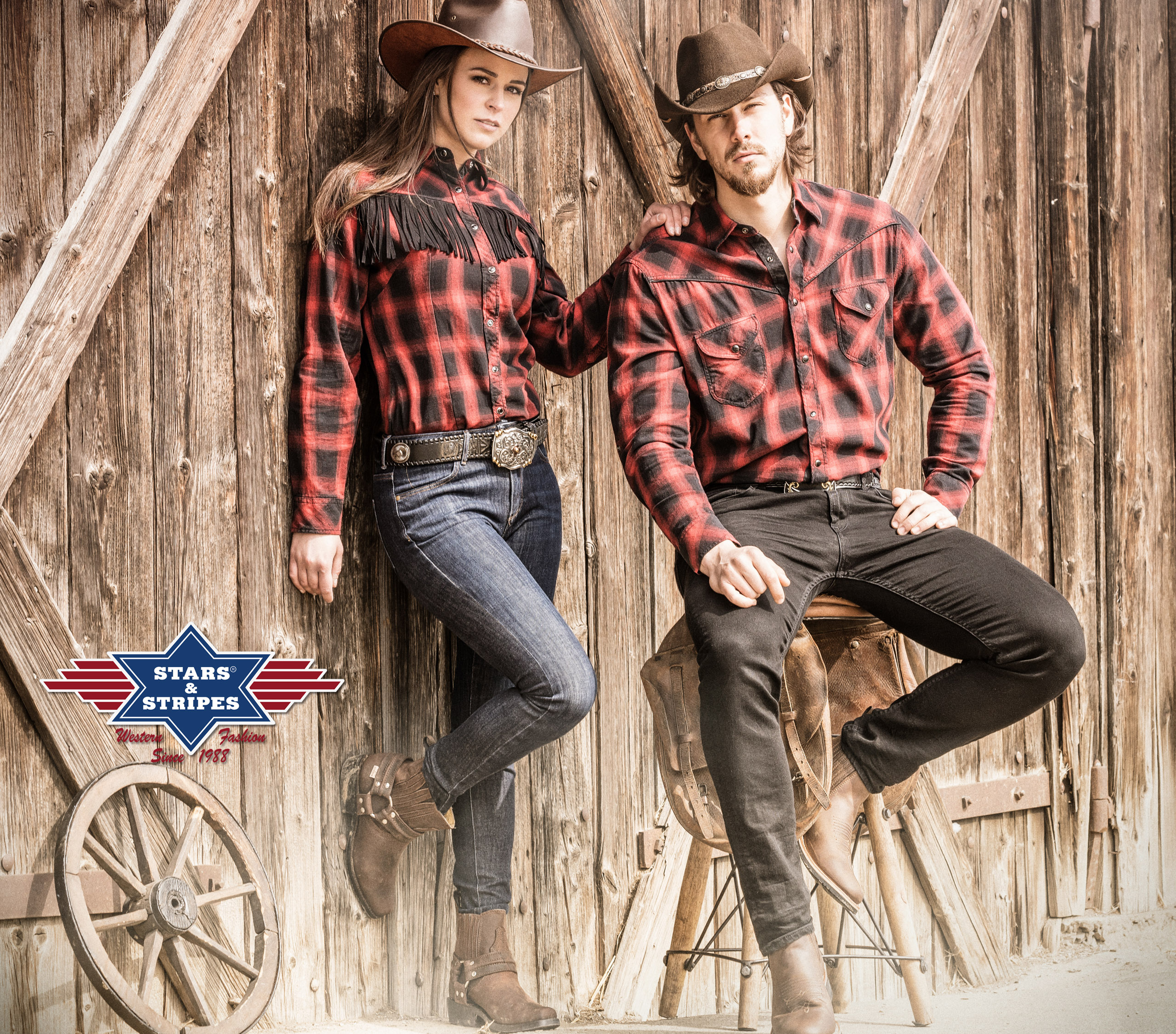 Stylová karovaná westernová košile, dvě náprsní kapsy, zapínání na druky..