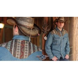 Pánská riflová westernová košile s okrasným vyšívaným vzorem na ramenou.