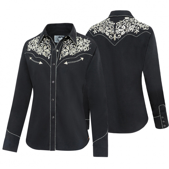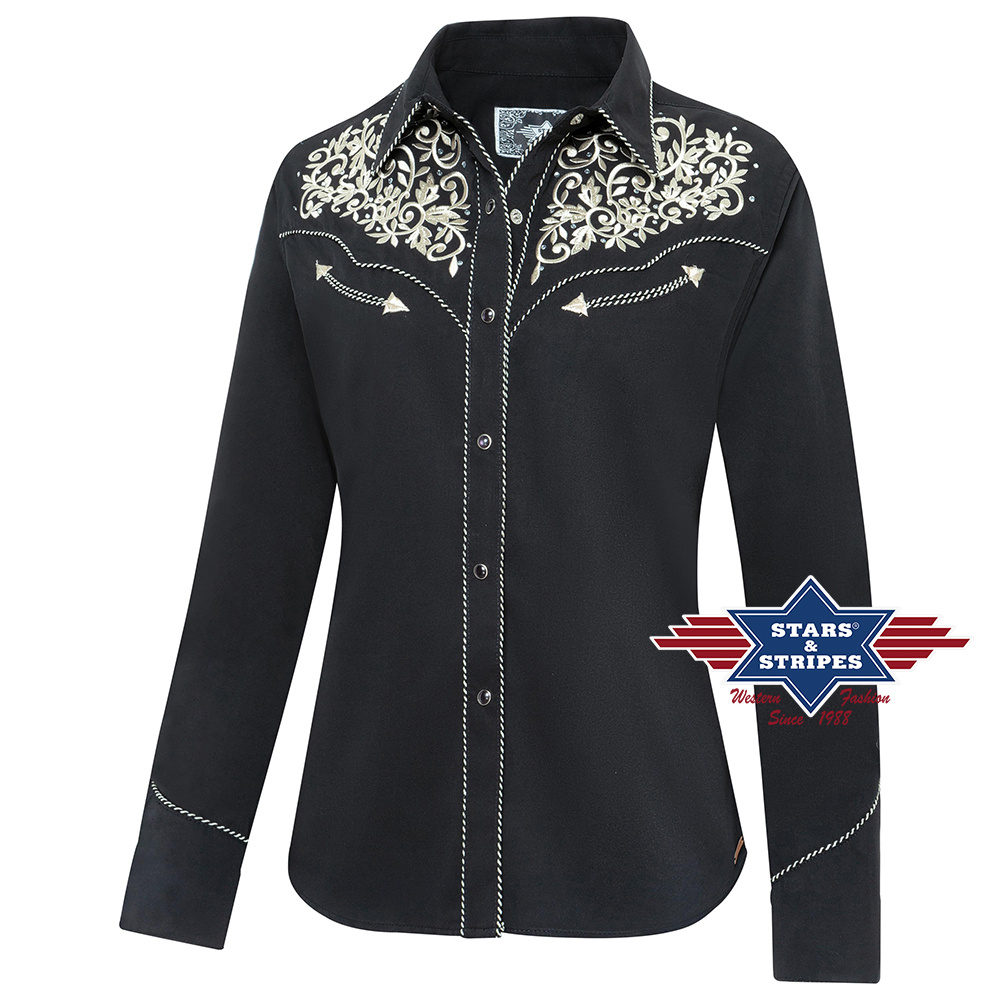 Elegantní dámská westernová halenka/košile zdobená výšivkami a lemováním švů.