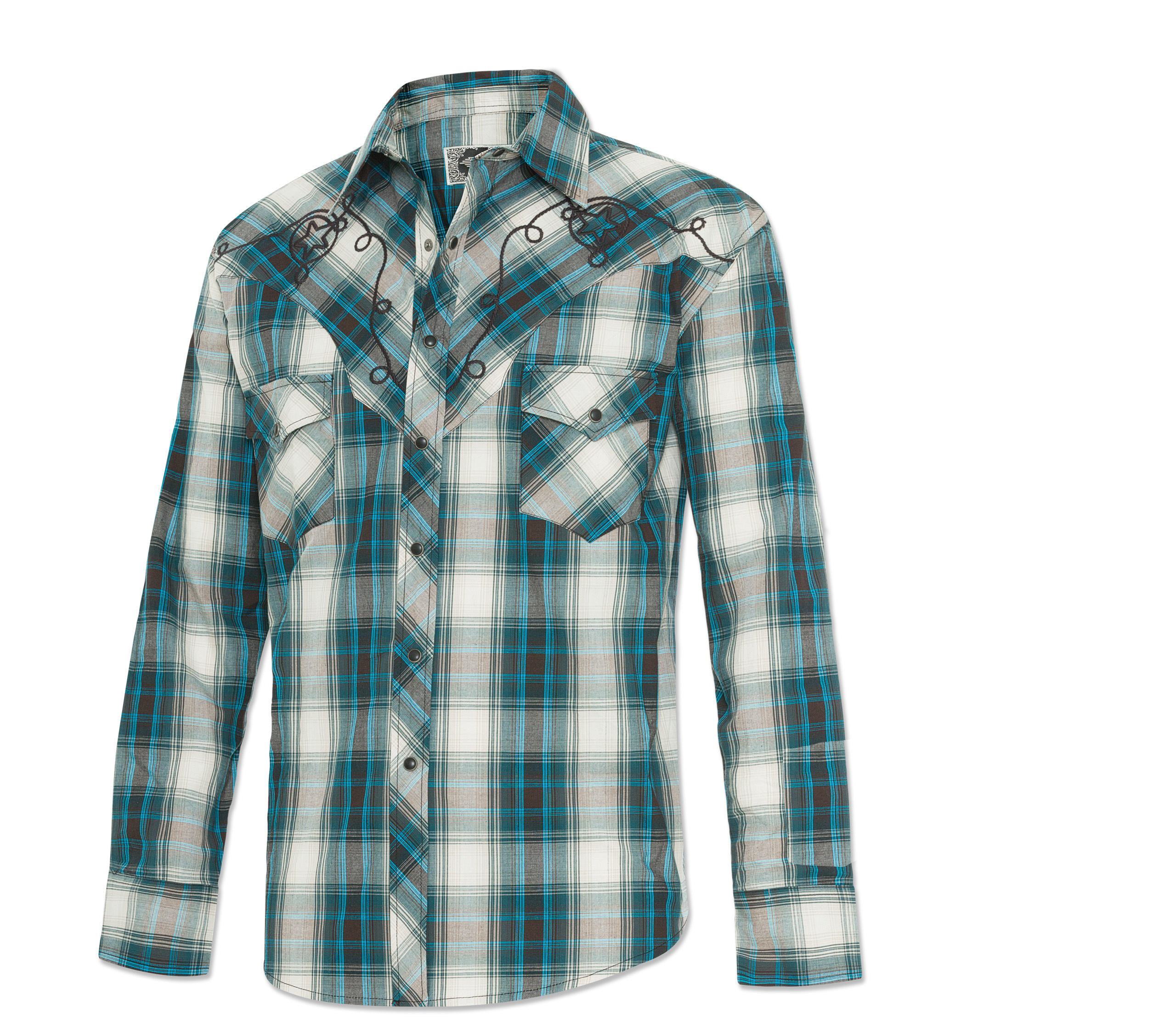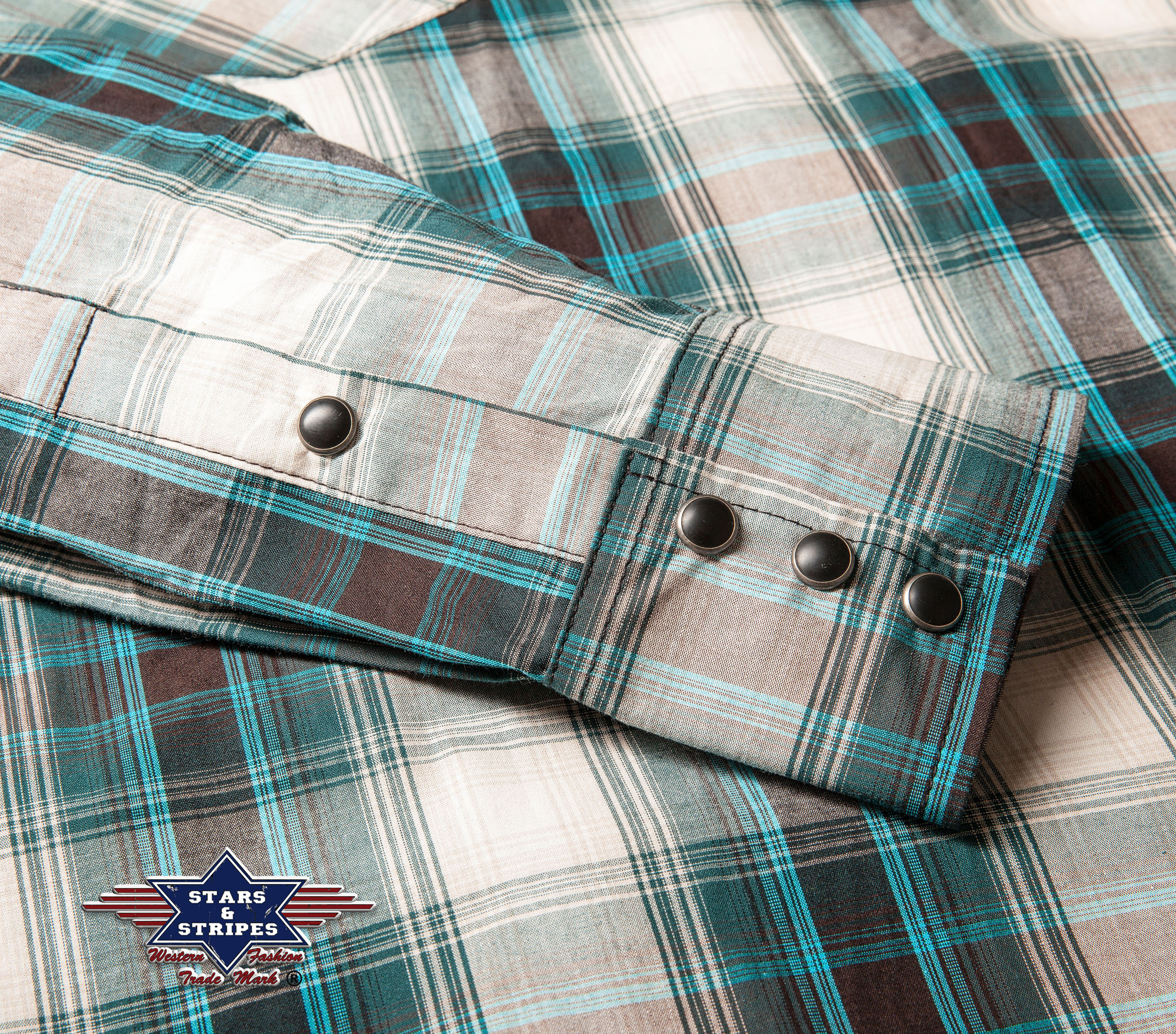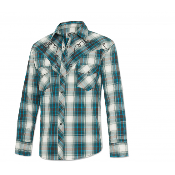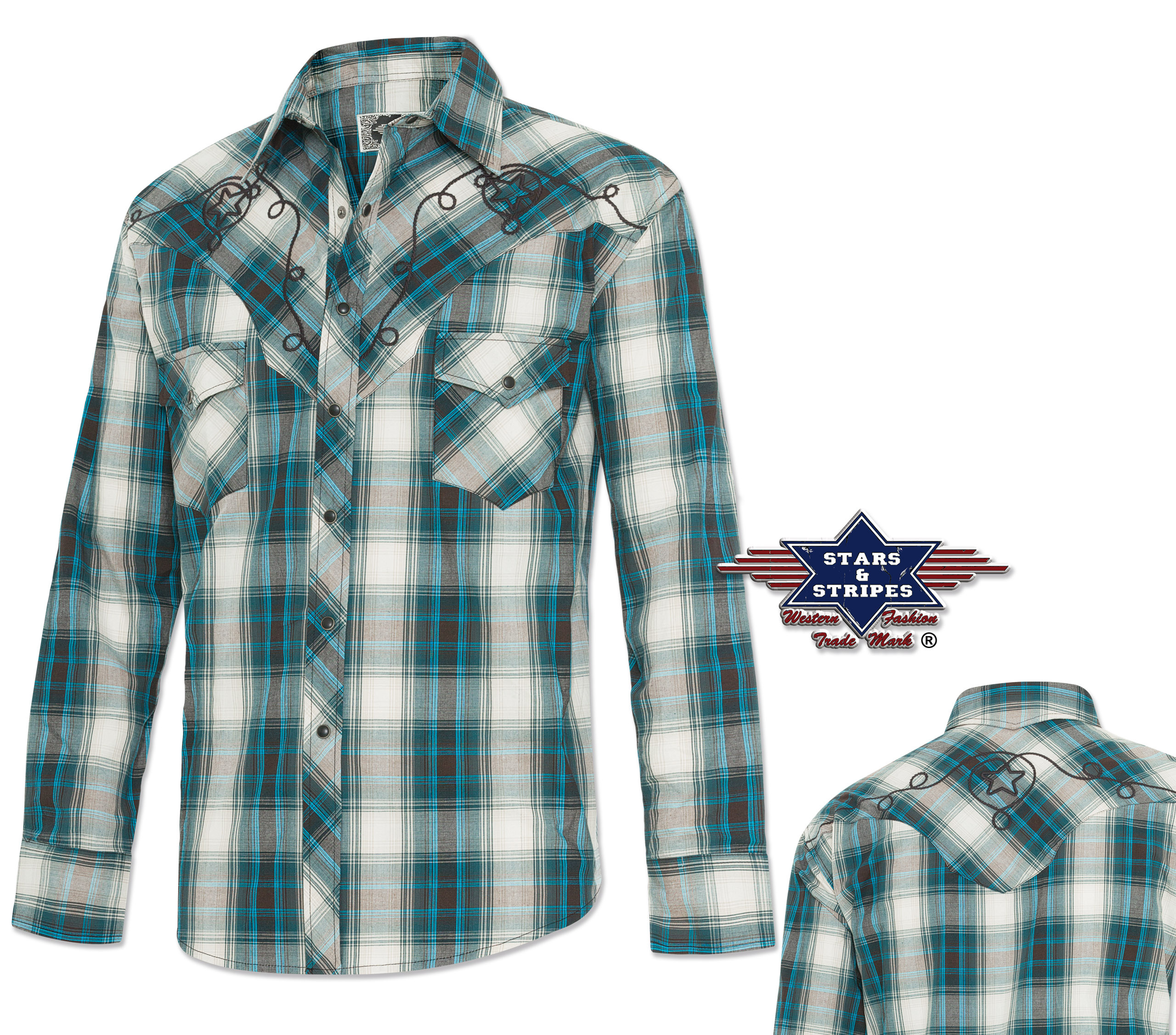 Karovaná westernová košile s výšivkami, náprsní kapsy, nastavitelné manžety, zapínání na druky.
