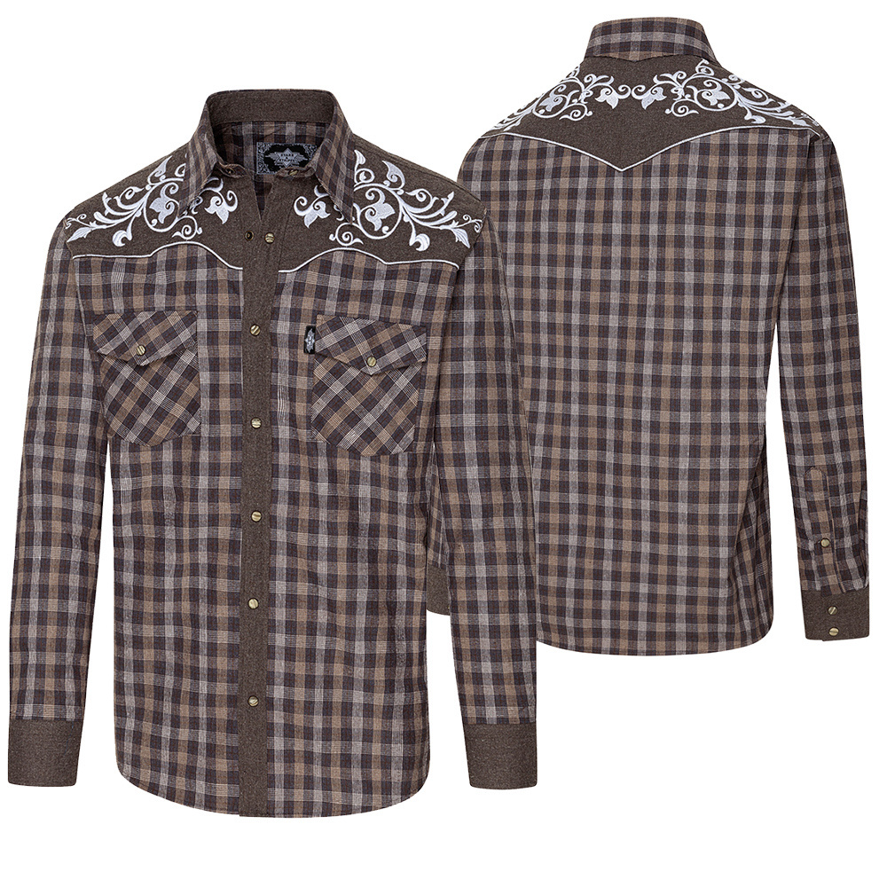 Stylová kostkovaná košile s vyšívaným westernovým sedlem květinového vzoru. Košili dotváří náprsní kapsy, lem v límci a slušivé patentky.