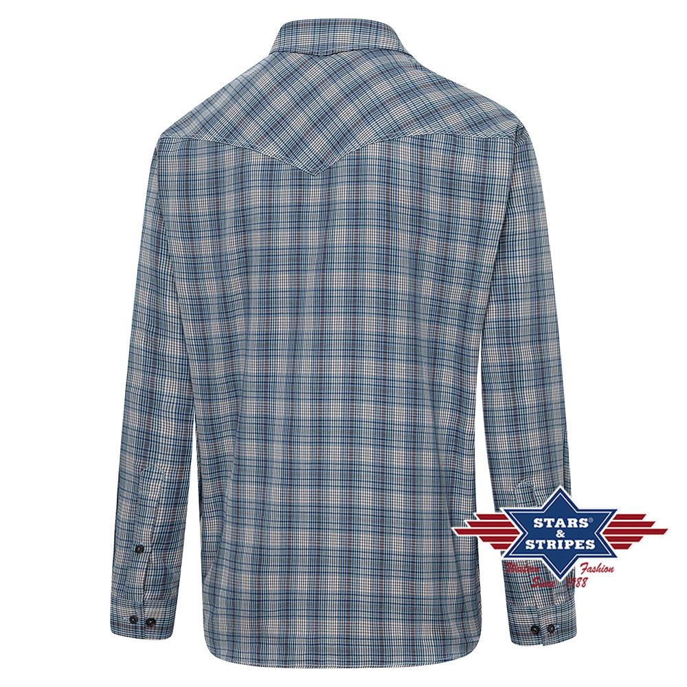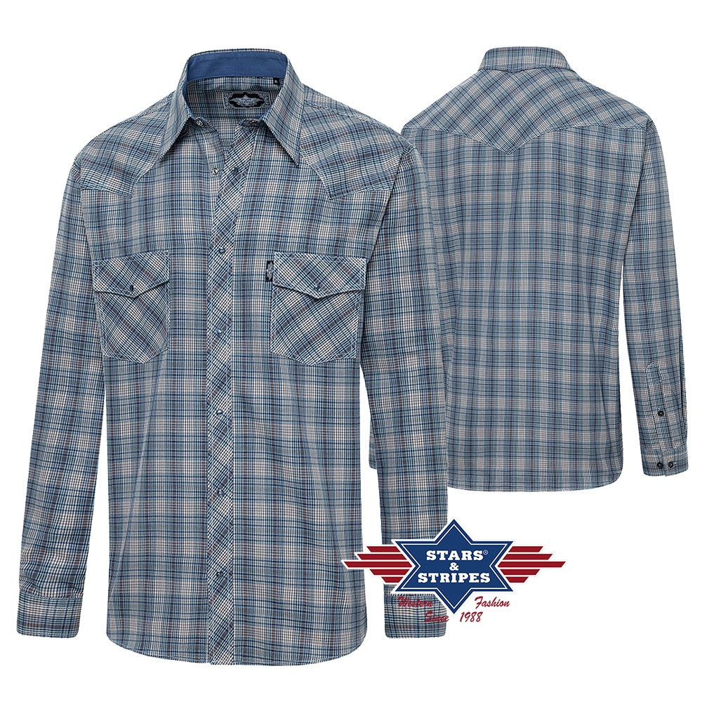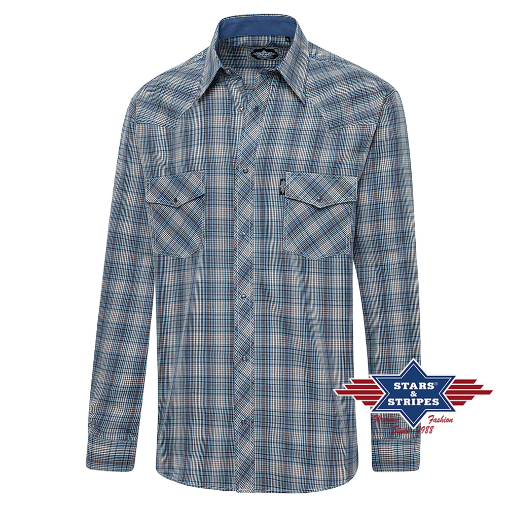 Stylová kostkovaná košile s westernovým sedlem a našitými náprsními kapsami. Design doplňuje látkový lem v límci. Dvojité zapínáni na rukávech umožňuje nastavení šířky manžet. Okrasné druky doplňují dokonalý vzhled košile.
