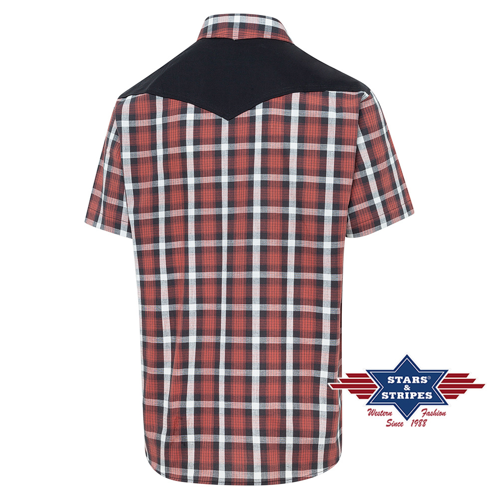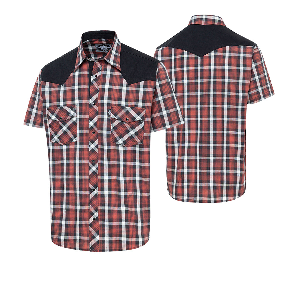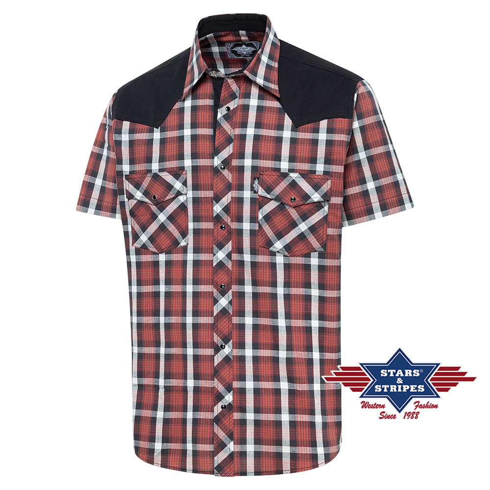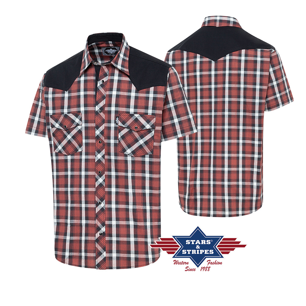 Stylová kostkovaná košile s krátkým rukávem, westernovým sedlem a našitými náprsními kapsami. Design doplňuje látkový lem v límci. Okrasné druky doplňují dokonalý vzhled košile.