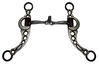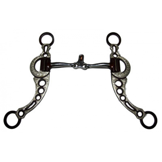 Westernové pákové udidlo zdobené stříbrným gravírováním, se spojkou v náustku.