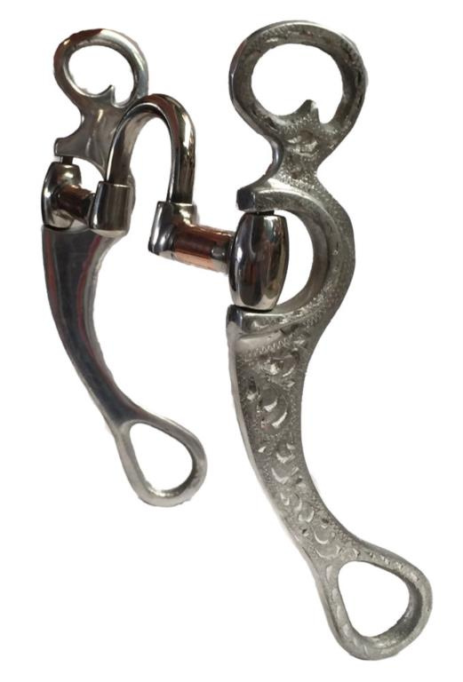 Těžké korekční westernové pákové udidlo se zdobenými hliníkovými rameny a náustkem s mědí.