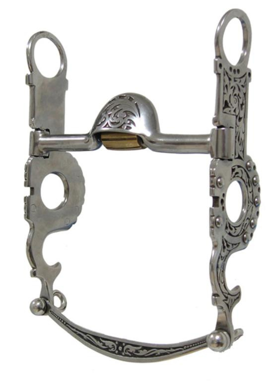 Westernové pákové udidlo ve stylu Santa Anna s měděným válečkem.