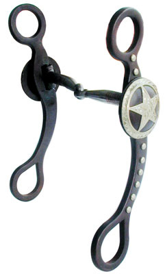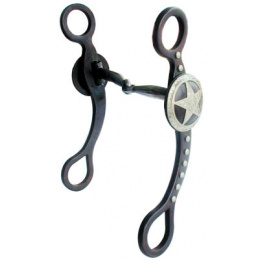 Westernové pákové udidlo se stříbrnou hvězdou a nýtky a s náustkem vykládaným měděnými proužky.