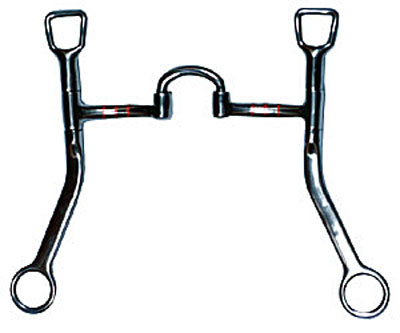 Westernové pákové udidlo s náustkem vykládaným měděnými proužky. Čtvercové horní kroužky o velikosti 0,75" (1,9 cm) a ploché ramena.