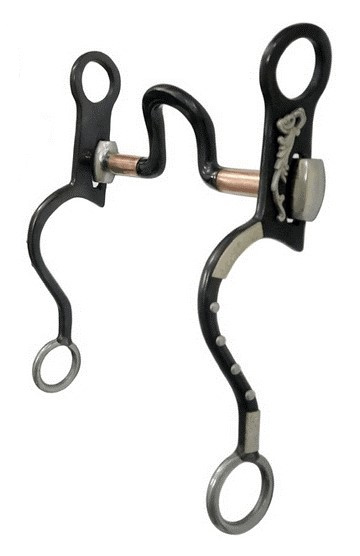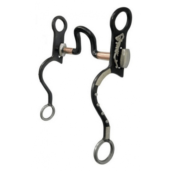 Tmavé westernové pákové udidlo zdobené stříbrným gravírováním a nýtky, s měděnými válečky.