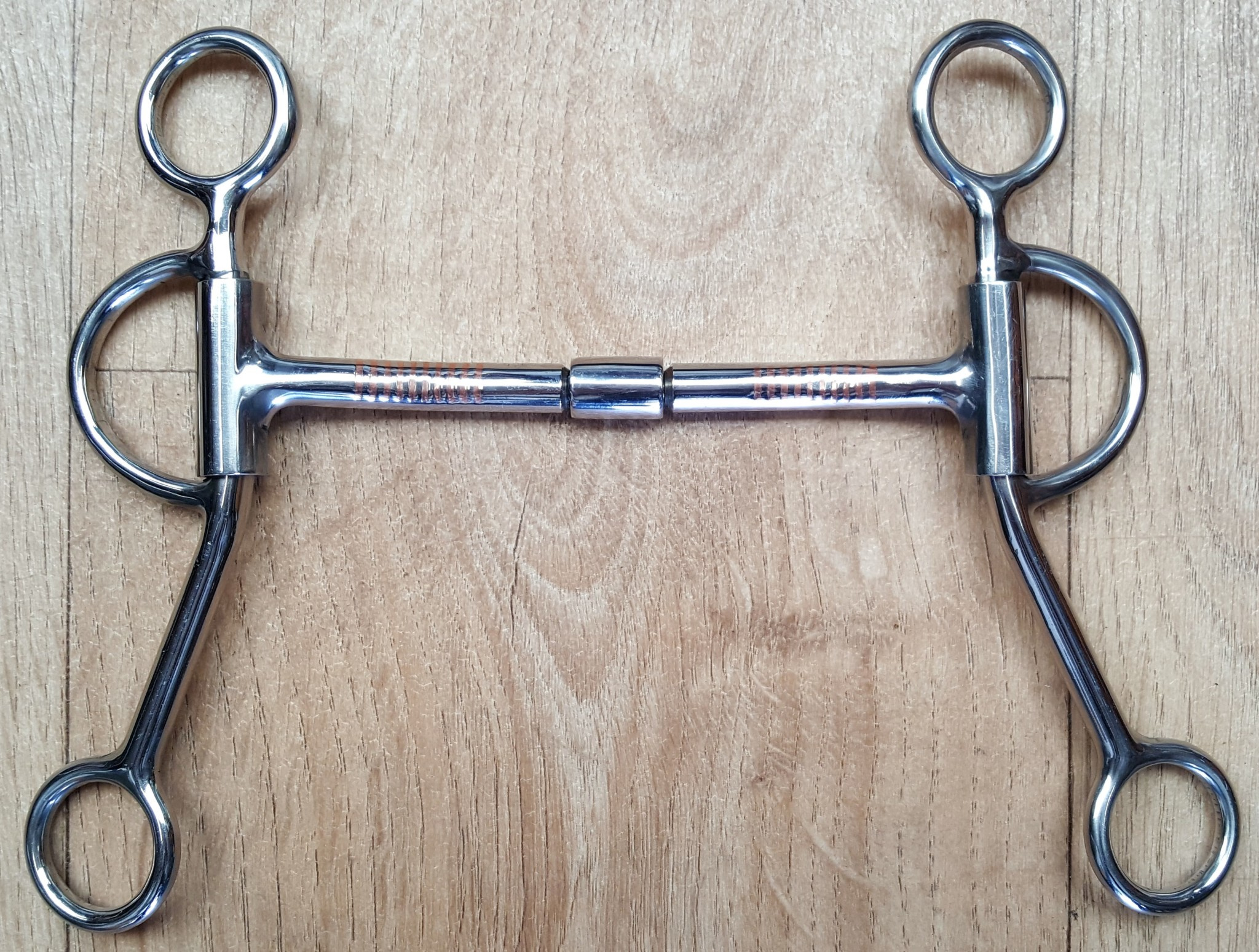 Tréninkové westernové pákové udidlo s válečkovým náustkem Billy Allen a s měděnými proužky.