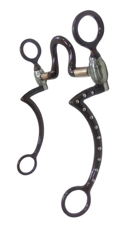 Sedmičkové westernové pákové udidlo zdobené stříbrnými nýtky, s plochým náustkem a s měděnými válečky.