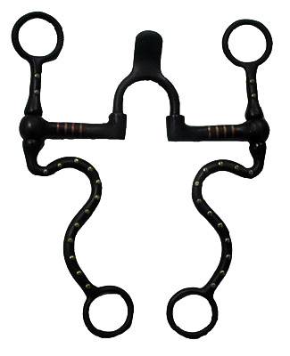 Korekční westernové pákové udidlo s gravírovanými stříbrnými tečkami, náustek se lžičkou vykládaný měděnými proužky.