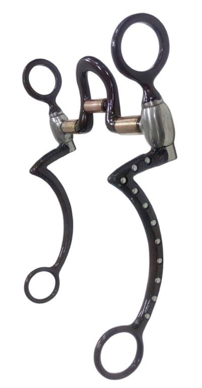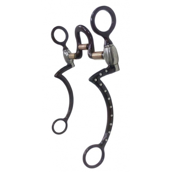 Sedmičkové westernové pákové udidlo zdobené stříbrnými nýtky, s plochým náustkem a s měděnými válečky.
