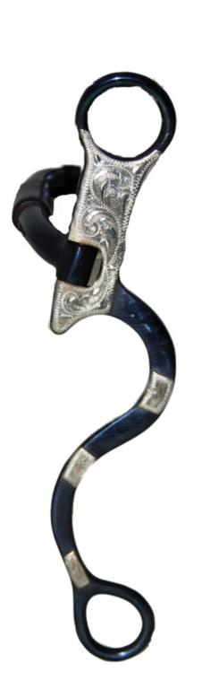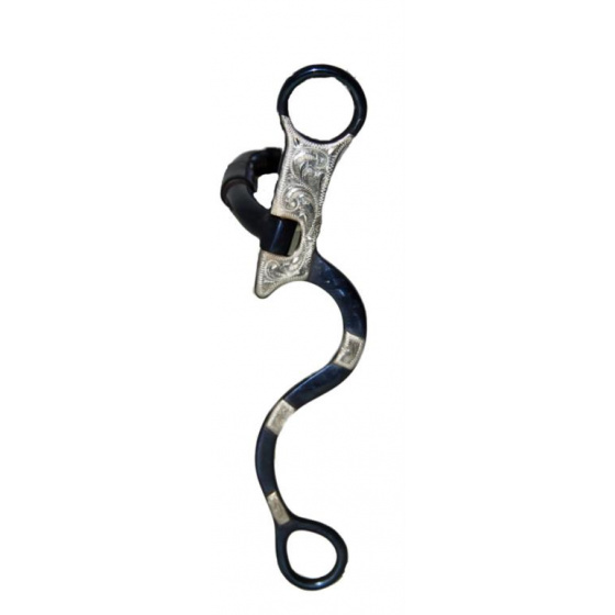 Westernové pákové udidlo z modré oceli se zdobenými gravírovanými rameny, náustek s válečkem Billy Allen.