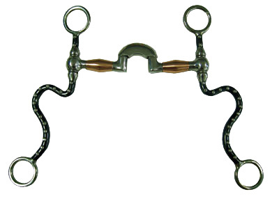 Westernové pákové udidlo s gravírovaným stříbrným nýtky, náustek s lehkým C-portem a měděnými válečky.