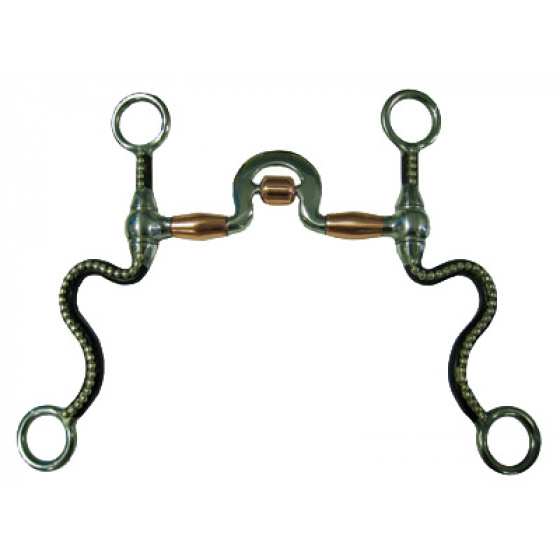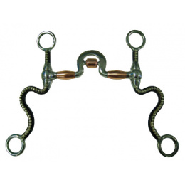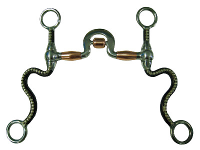 Westernové pákové udidlo s gravírovaným stříbrným nýtky, náustek se středním korekčním portem a s měděnými válečky.