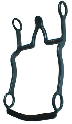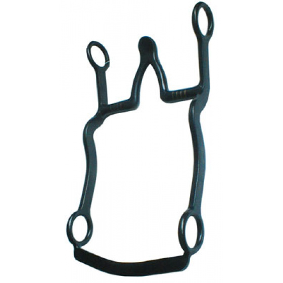 Westernové pákové udidlo s dlouhými rameny, náustek vykládaný měděnými proužky s vysokým portem a lžičkou, s pevnou spojkou.