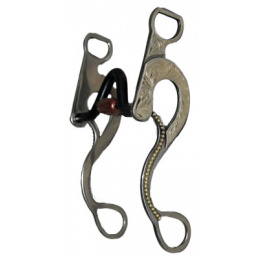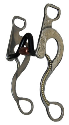 Zvedací westernové pákové udidlo se stříbrným zdobením, černý náustek se středním portem a s měděným válečkem.