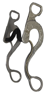 Zvedací westernové pákové udidlo se stříbrným zdobením, černý náustek s nízkým portem.