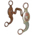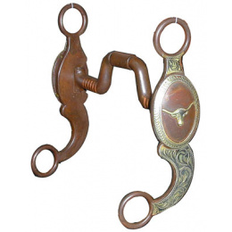 Westernové pákové udidlo zdobené stříbrnou býčí hlavou a gravírováním, náustek vykládaný mědí.