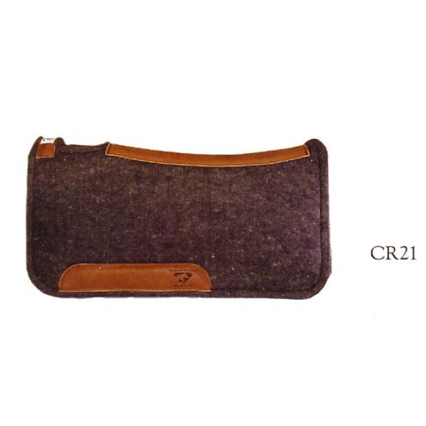 Popis produktu westernová podsedlová deka Contoured ToughVyrobeno ze 100% vlněného filcu, prošito pravou kůží kolem páteře pro tlumení nárazů, zakončeno pravou kůží. Velikost: 30" x 30", 32" x 32" Barva: tmavě černohnědý přírodní filc Tloušťka filcu: 1"