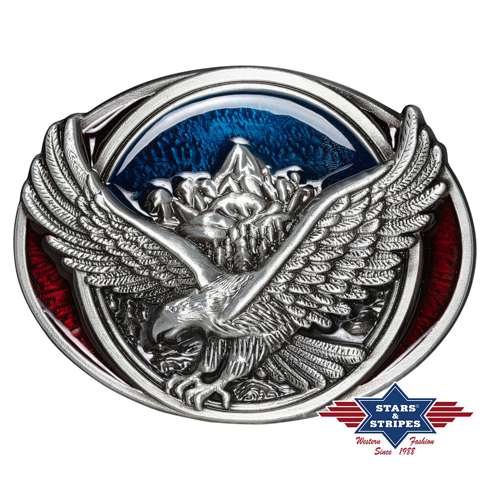 Stylová přezka na westernový nebo motorkářský opasek v barevném provedení. Tuto přezku musí mít každý milovník drsného chopper/western stylu. Pro opasky široké 4 cm.