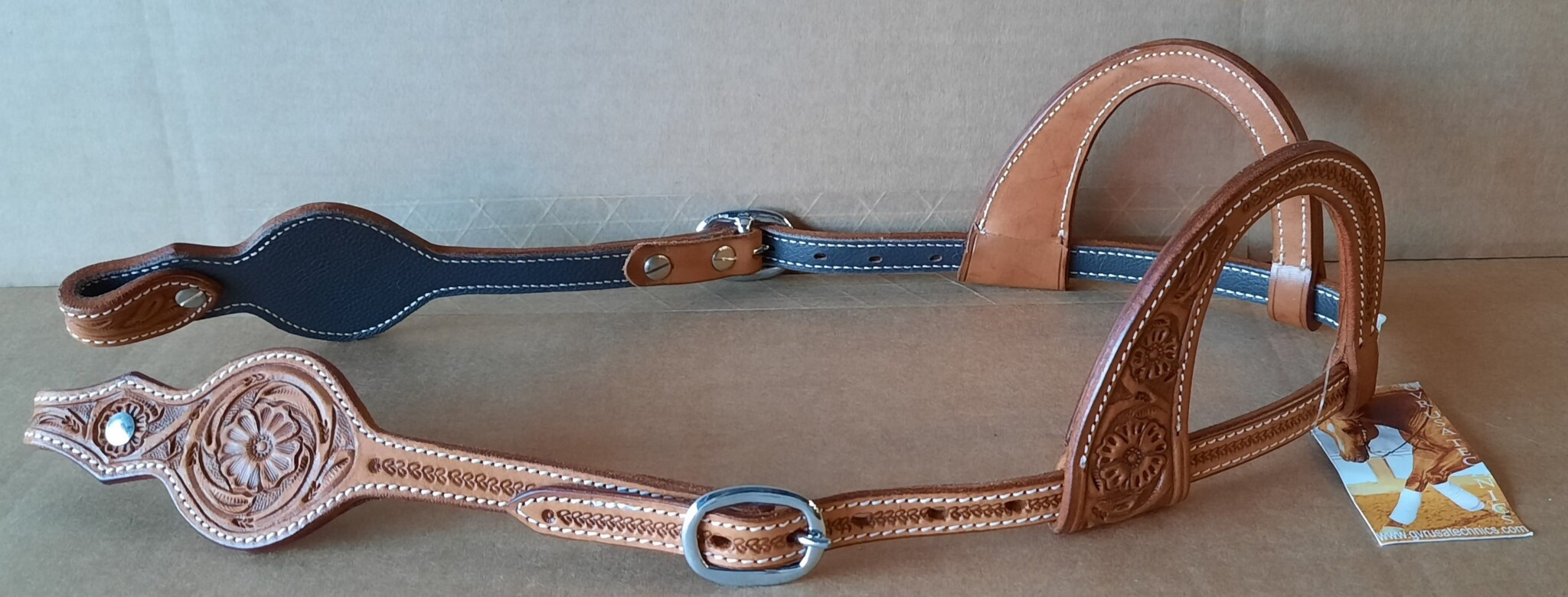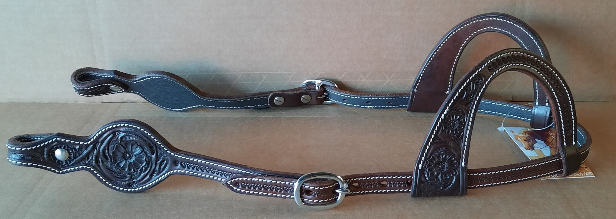 Prémiová kožená uzdečka na dvě uši zdobená květinovým vzorem. Podšitá jemnou telecí kůží, ozdobné prošití po obvodu.