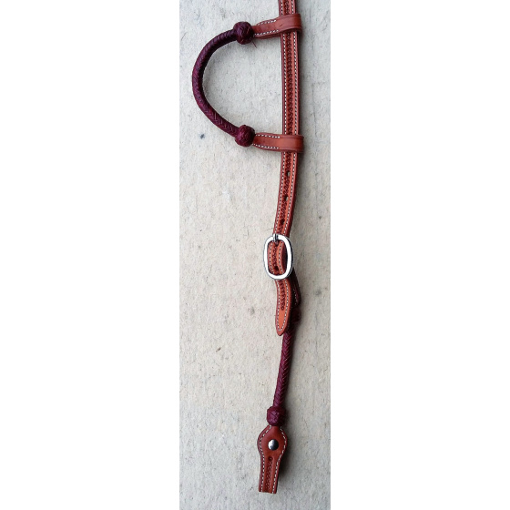 Kožená uzdečka na dvě uši s Latigo opletením na náušnicích a nálicnicích. Podšitá jemnou telecí kůží, ozdobné prošití po obvodu.