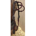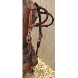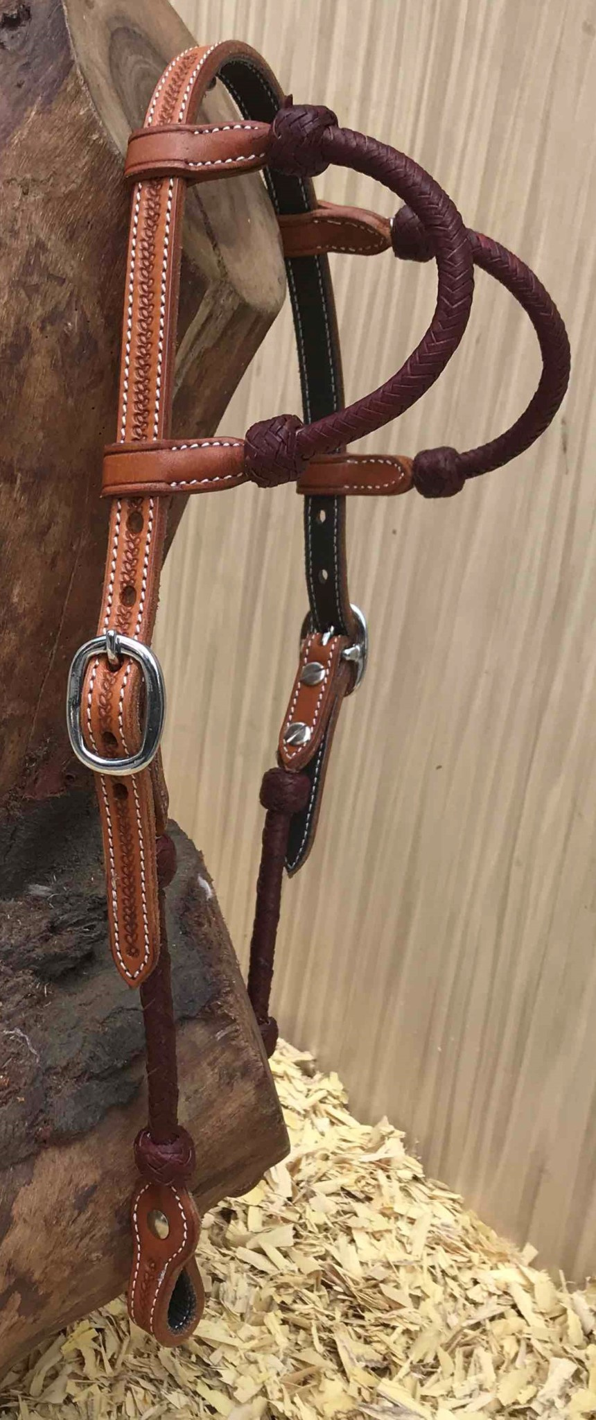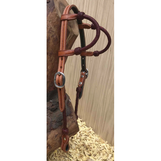 Kožená uzdečka na dvě uši s Latigo opletením na náušnicích a nálicnicích. Podšitá jemnou telecí kůží, ozdobné prošití po obvodu.