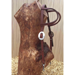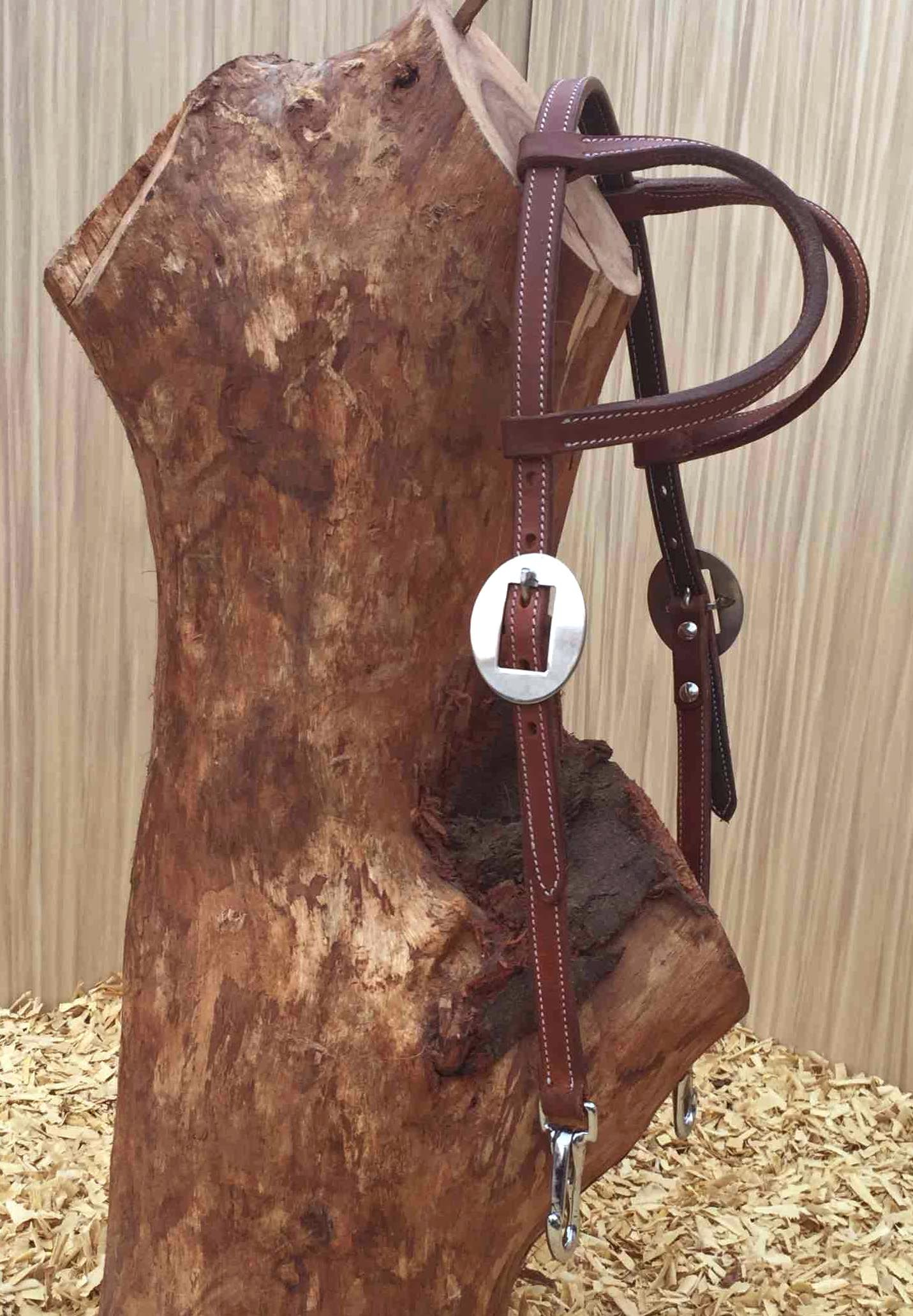 Prémiová kožená uzdečka na dvě uši zdobená se zdvojenými náušníky, nerezové kování. Podšitá jemnou telecí kůží, ozdobné prošití po obvodu.