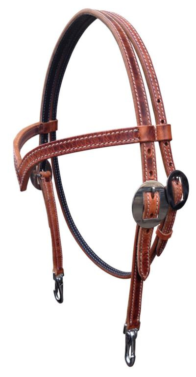 Kožená uzdečka s čelenkou do V zdobená. Podšitá jemnou telecí kůží, ozdobné prošití po obvodu.