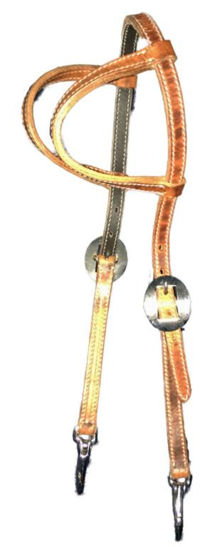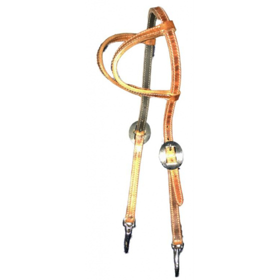 Prémiová kožená uzdečka na dvě uši Cattlemans se silnými plochými přezkami. Podšitá jemnou telecí kůží, ozdobné prošití po obvodu.