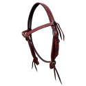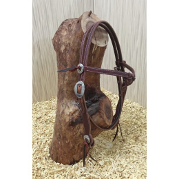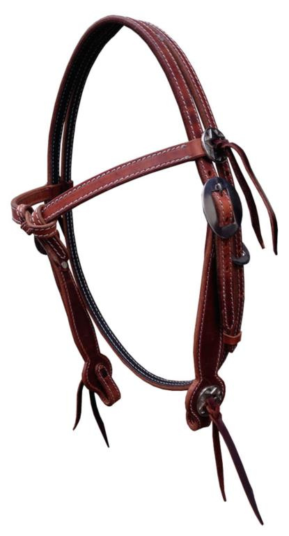 Prémiová kožená uzdečka s čelenkou zdobená stříbrným končakem. Podšitá jemnou telecí kůží, ozdobné prošití po obvodu.