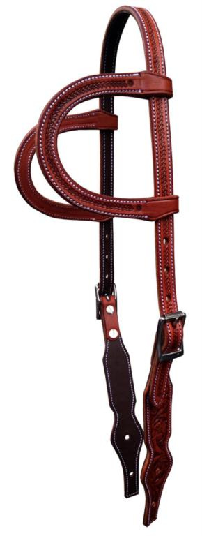 Kožená uzdečka na dvě uši Wickett & Craig zdobená květinovým vzorem a koženým končakem. Podšitá jemnou telecí kůží, ozdobné prošití po obvodu. Řemínky pro udidlo nutno objednat zvlášť.