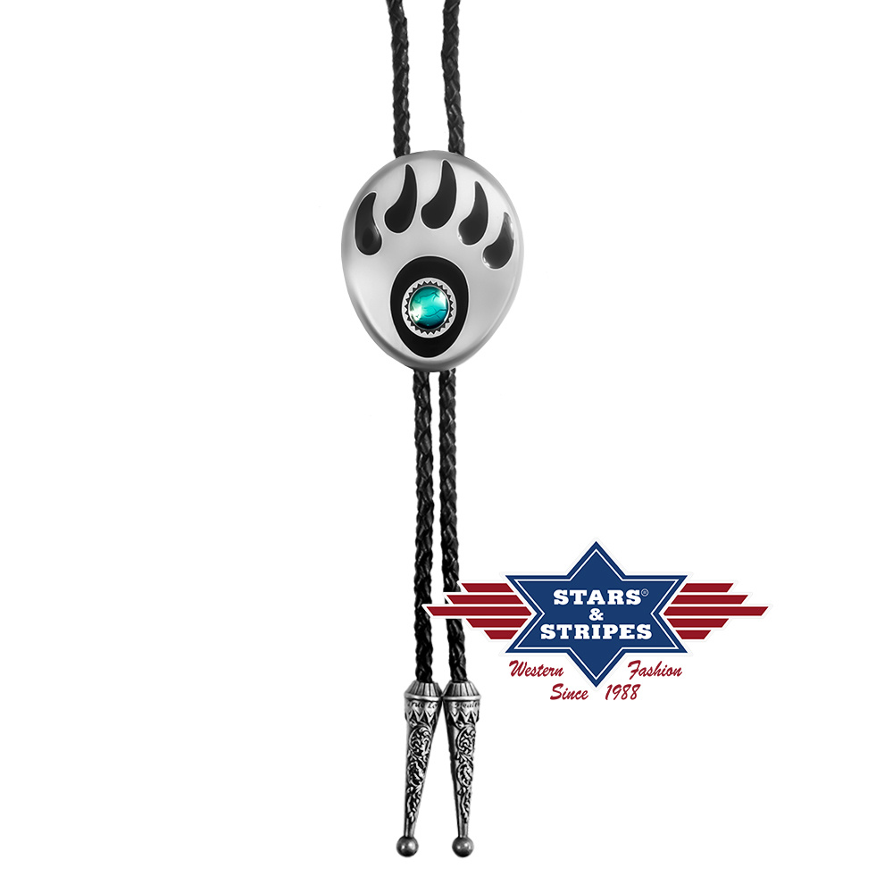 Stylové bolo, westernová náhrada kravaty, s originálním motivem. Tento doplněk nesmí chybět v šatníku žádného milovníka drsného chopper/western stylu. Na zadní straně jsou bola opatřena klipsou pro snadné nastavení délky kolem krku na černé pletené šňůrce.