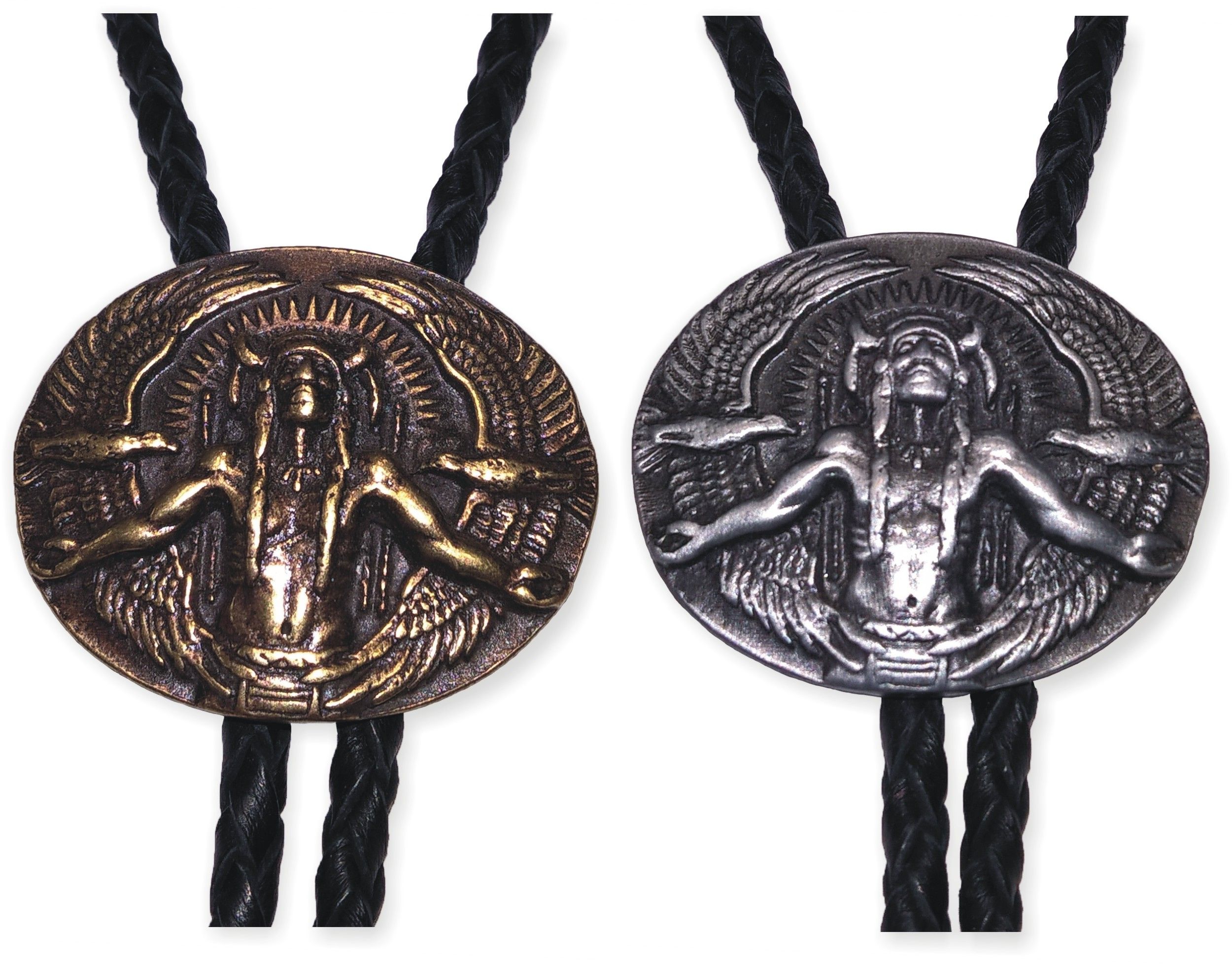 Stylové bolo, westernová náhrada kravaty, s originálním motivem. Tento doplněk nesmí chybět v šatníku žádného milovníka drsného chopper/western stylu. Na zadní straně jsou bola opatřena klipsou pro snadné nastavení délky kolem krku na pletené šňůrce. Složení bola lze nakombinovat s různou barvou šňůrky a s různými špičkami.