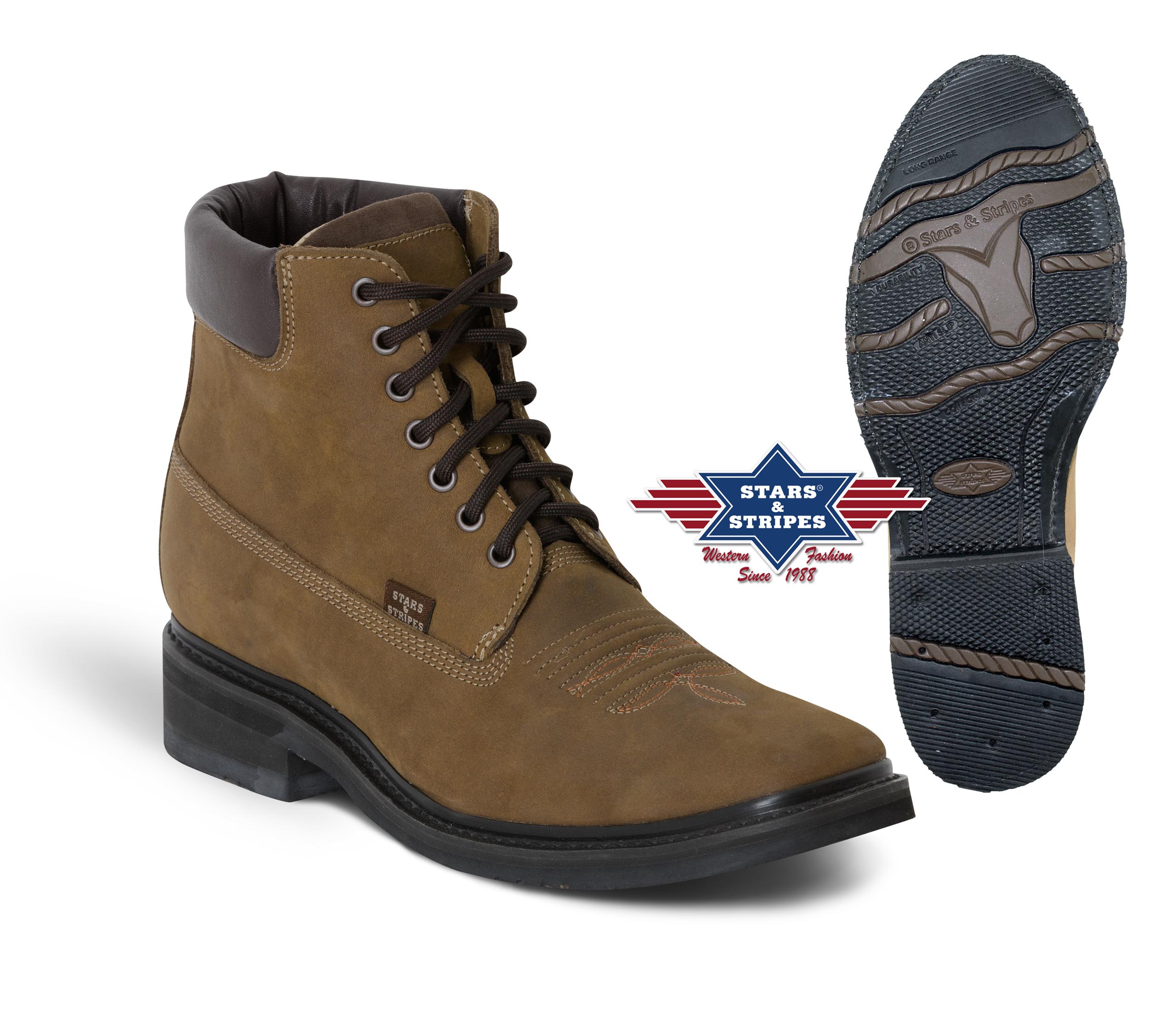 Stylové westernové šněrovací boty s kulatou špičkou. Jsou vyráběny ručně z velmi kvalitní hovězí kůže tradiční mexickou metodou. Pevná gumová podrážka je vyrobena na "hight-quality" Goodyear konstrukci. Boty mají koženou podšívku a pohodlnou měkkou stélku.