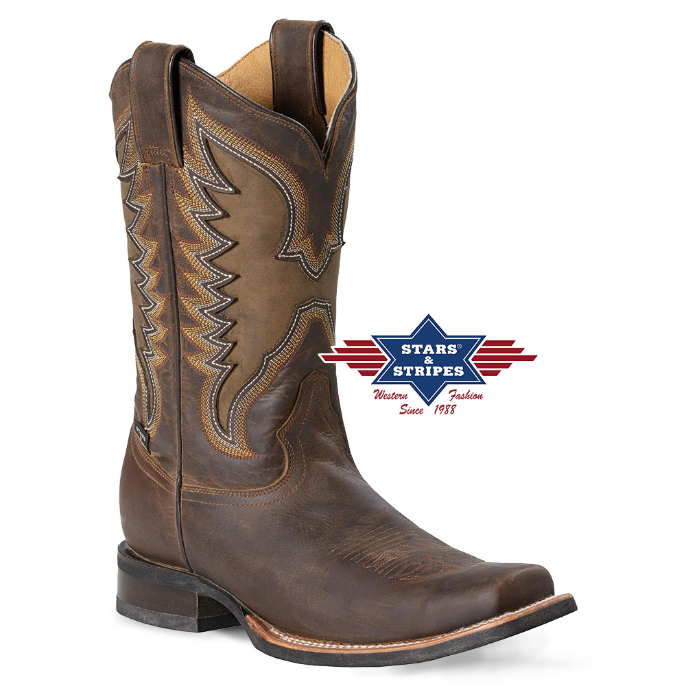 Klasické westernové boty s "useknutou špičkou". Díky polstrované stélce a gumové podrážce jsou boty obzvláště pohodlné. Jsou vyráběny ručně z velmi kvalitní hovězí kůže tradiční mexickou metodou. Pevná pryžová podrážka je vyrobena na "hight-quality" Goodyear konstrukci. Boty mají koženou podšívku, všechny materiály jsou kvalitní přírodní kůže.