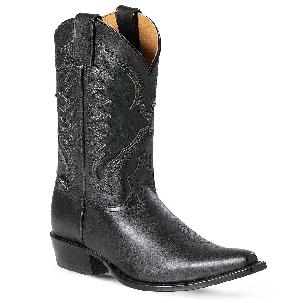 Klasické westernové boty s polstrovanou stélkou. Jsou vyráběny ručně z velmi kvalitní hovězí kůže tradiční mexickou metodou. Pevná podrážka je vyrobena na "hight-quality" Goodyear konstrukci. Boty mají koženou podšívku, všechny materiály jsou kvalitní přírodní kůže.
